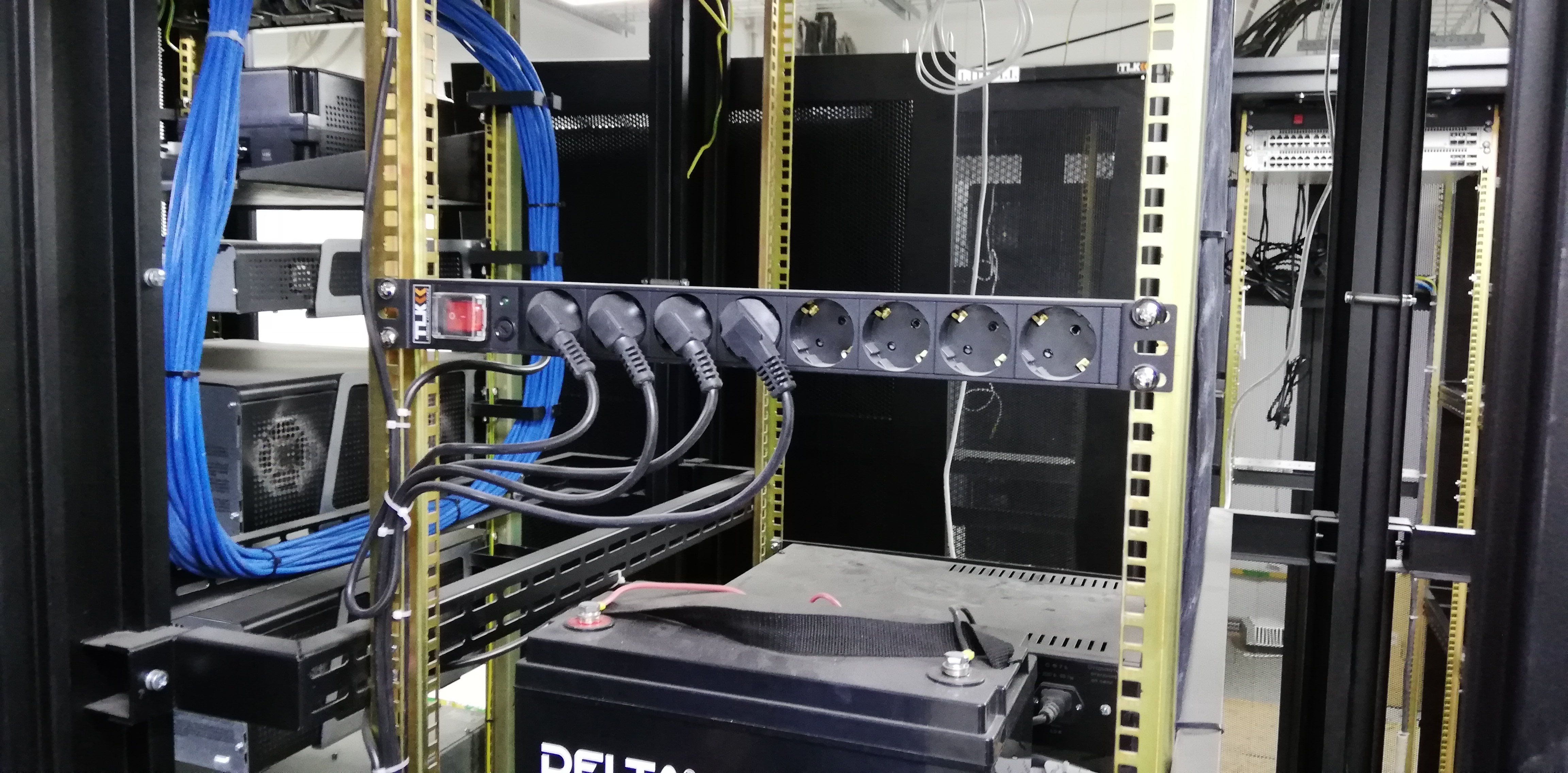 Проект начался еще в 2016 году, и объект в части ЛВС и СКС был спроектирован компанией ЗАО «КРИС», которая изначально заложила в проект оборудование NIKOMAX и TLK. Так и сложилось − в настоящий момент во «вверенных» помещениях силу СКС держат почти 500 портов категории 5е на основе системы мониторинга, 25 шкафов TLK серии TFE, а также аксессуары: коммутационные шнуры и панели, модули Keystone и корпуса настенных розеток в NIKOMAX, фронтальные полки и регулируемые опоры, заглушки и кабели питания в TLK и многое другое.