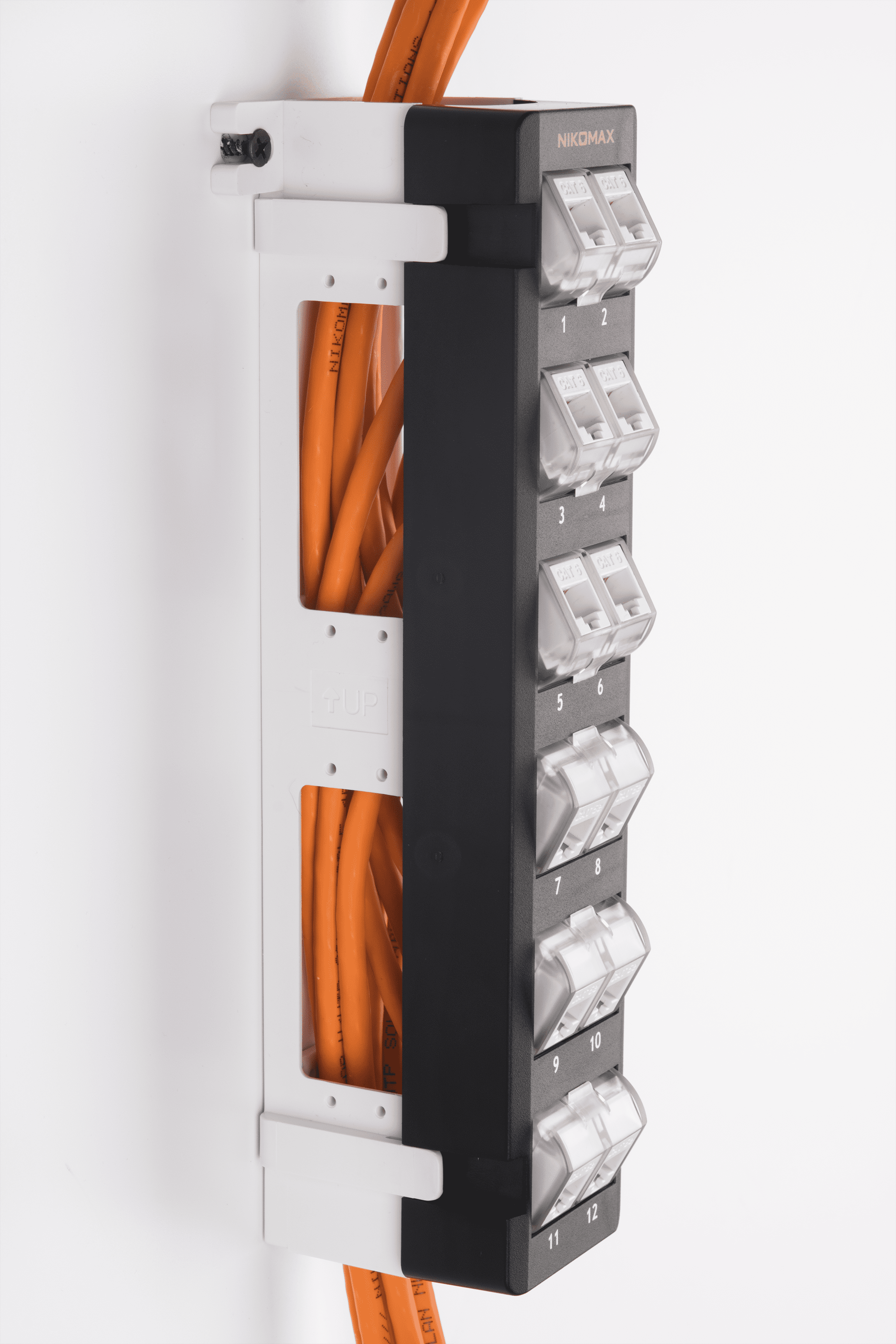 В большинстве СКС панели используются для монтажа в 19-дюймовые шкафы или стойки для обеспечения аккуратной и высококачественной коммутации кабелей. Но бывают случаи, когда их размещение в специально оборудованных для этого местах не представляется возможным, или попросту нецелесообразно. Для таких ситуаций специалистами NIKOMAX был разработан совершенно новый продукт – настенная наборная коммутационная панель NMC-WP12-BLANK-BK.Новинка выполнена в неэкранированном исполнении из высокопрочного негорючего ABS-пластика, соответствующего стандарту UL94V-0. Панель вмещает в себя до 12 модулей типа Keystone, а благодаря универсальности наборной конструкции, в ней можно собрать подсистемы разных типов и категорий воедино. Эргономичный дизайн позволяет разместить NMC-WP12-BLANK-BK в любом удобном месте, не нарушив эстетичность помещения.