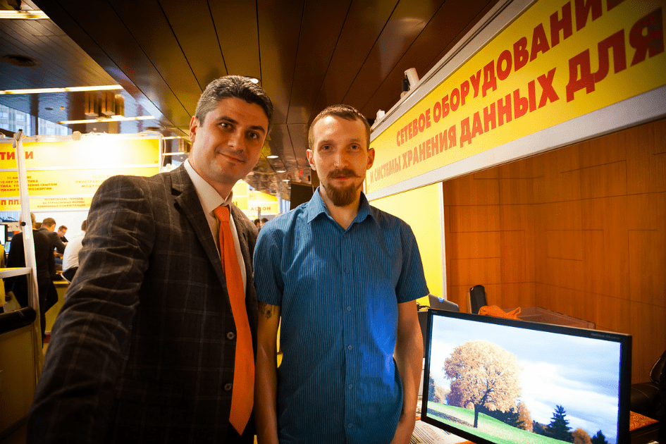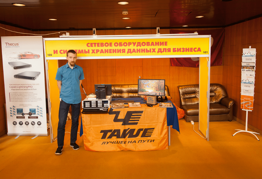 Наиболее активно посетители стенда Тайле обсуждали вопросы хранения данных: RAID массивы, дополнительное ПО, поддержку SSD и SCSI, лицензирование, техническую поддержку и совместимость NAS с 1С. И ни один вопрос не остался без ответа. Об этом позаботились менеджер по развитию Андрей Гусев и помощник системного администратора Юрий Пелявин.
